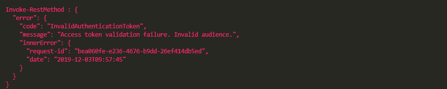 "code": "InvalidAuthenticationToken",