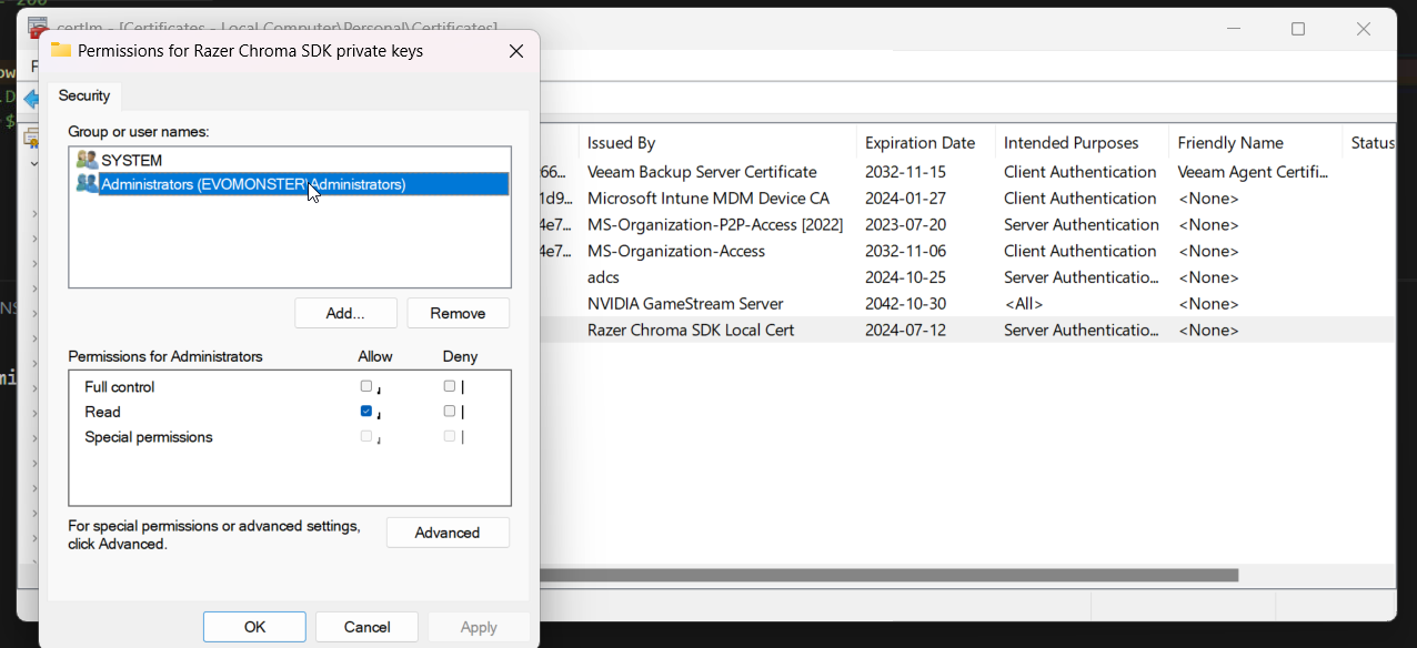 Of course, you need to do it on your proper certificate, not the Razer Chroma SDK certificate, as shown in the screenshot.