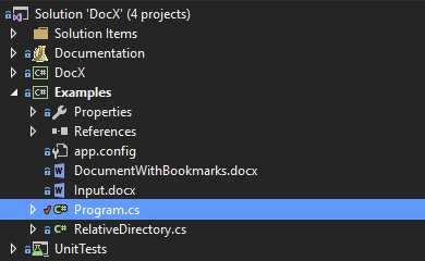 Above example is part of DocX Examples and can be found in DocX source package under **Examples \ Program.cs. **This example uses RelativeDirectory.cs class. It's required for the code sample to work and are included in the sources of DocX.