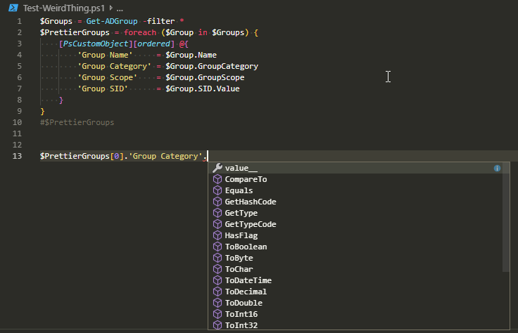 $PrettierGroups[0].'Group Category'.GetType()