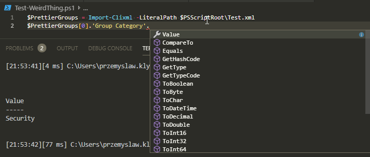 While Export-CliXml converted Enum to String, it does that in a way you need to be careful when accessing your data. It wasn't visible to me in DEBUG in **VSCode **either. The data would look exactly as expected, yet when my modules were accessing properties, they would deliver what you saw in the introduction. Now that I know of this problem, I can address this.