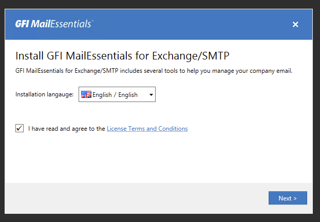 GFI MailEssentials 20 installation stuck on Administrators email address