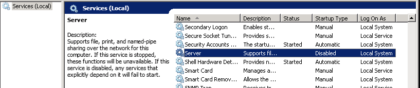 When it's back up and running, Start** Server** (LanmanServer) service and verify shares functionality.
