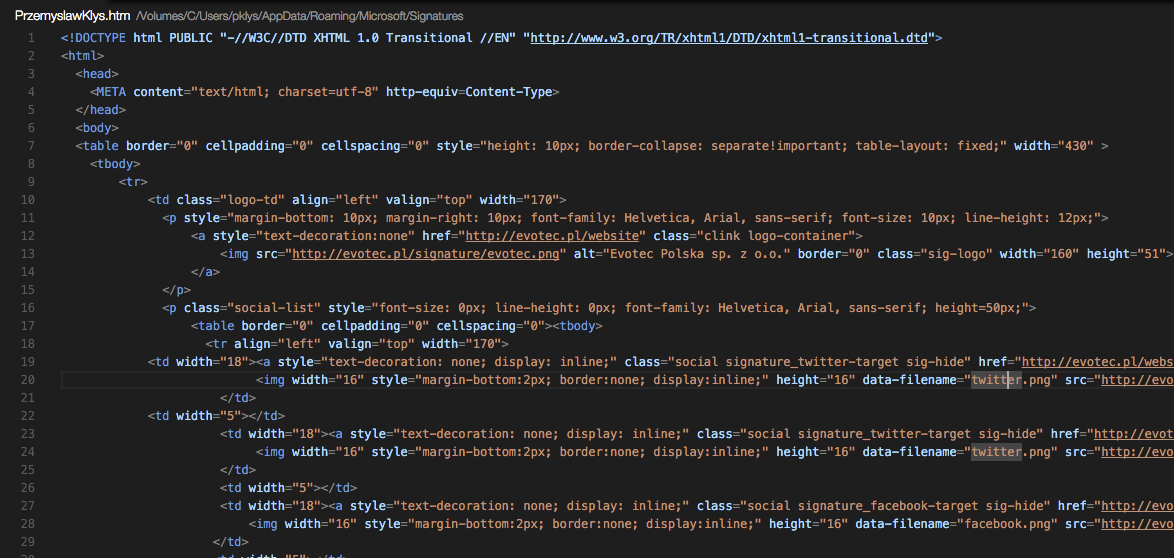 Having nicely formatted, good looking signature is a must for a company these days. To do that one usually has to create a nice looking signature using HTML. While the first step is quite easy because there are multiple tools available for that installing it on Mac OS X in Mail program is not that easy. Installing signature in Mail requires multiple steps. Below you can find a full list of steps required to create one.