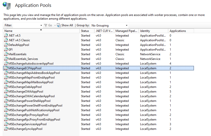 - After that it's just matter of opening IIS, finding **MSExchangeECPAppPool **and **recyling **it.
