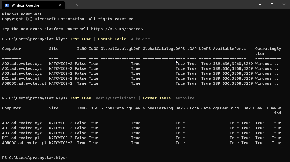 Test-LDAP -VerifyCertificate | Format-Table -AutoSize
