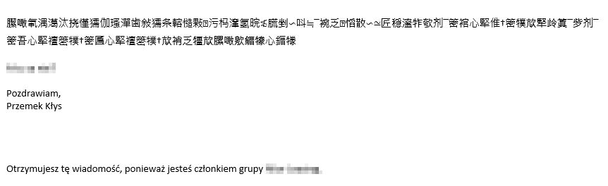 However what I've noticed is that if email is sent as Plain Text it's actually totally scrambled as below using Chinese characters