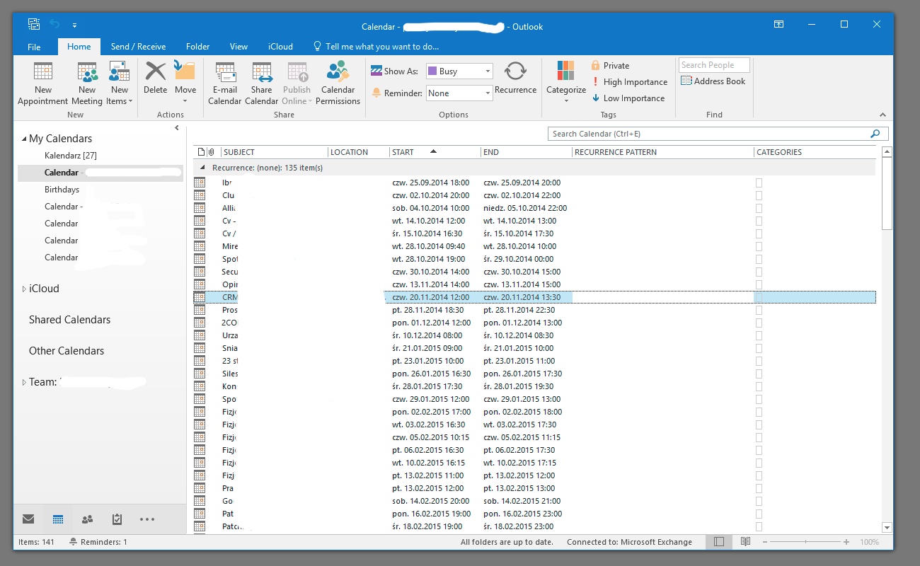 We can now simply select all entries by using Alt + A keyboard combination and drag and drop it to our second Office 365 / Exchange account. As before make sure that All folders are up to date after all calendar entries have been moved. Remember to move contacts and tasks items in the same way. Simply drag & drop then in correct places.