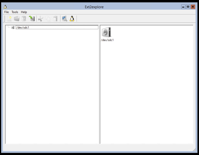 After restoring a VHDx image from a disk library using Altaro Hyper-V Backup and mounting it in Windows, we just had to get the linux files out. For this we used a little software called Ext2Read. While there are other software programs out there this one seemed most convenient and easy to use. The program itself is just one simple file (ext2explore.exe) which can be run without any installation on the server. You simply start it up, it automatically detects the Linux drives attached to Windows and shows detected partitions.
