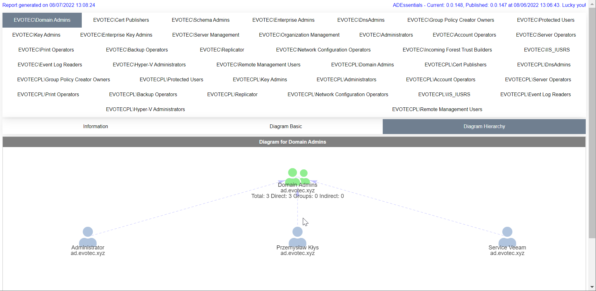 Remember that you can also pick and choose groups you want to display from the defined critical groups. Just in case you're not interested in the full scope of your Forest.