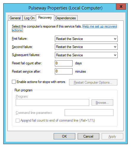 Set-ServiceRecovery -ServiceDisplayName "Pulseway" -Server "MAIL1"