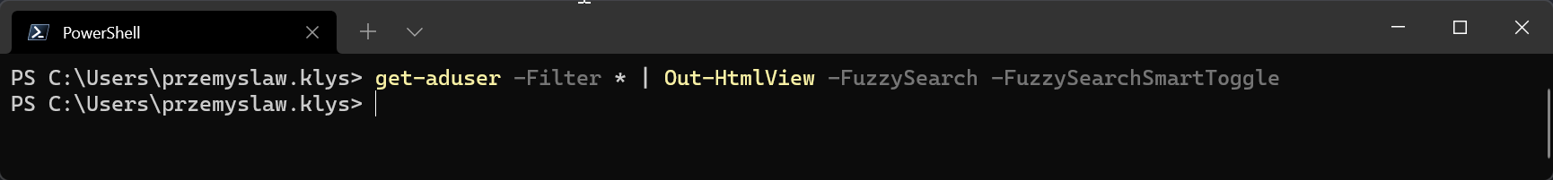 get-aduser -Filter * | Out-HtmlView -FuzzySearch -FuzzySearchSmartToggle