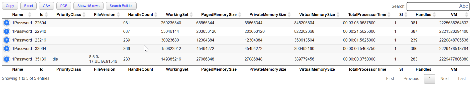 Get-Process | Out-htmlview -First 5 -FuzzySearchSmartToggle