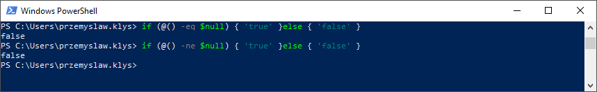 if (@() -ne $null) { 'true' }else { 'false' }