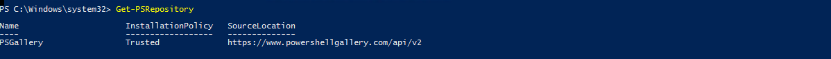 Register-PSRepository -Name 'PSGallery-Alternative' -SourceLocation 'https://www.powershellgallery.com/api/v2/' -InstallationPolicy Trusted