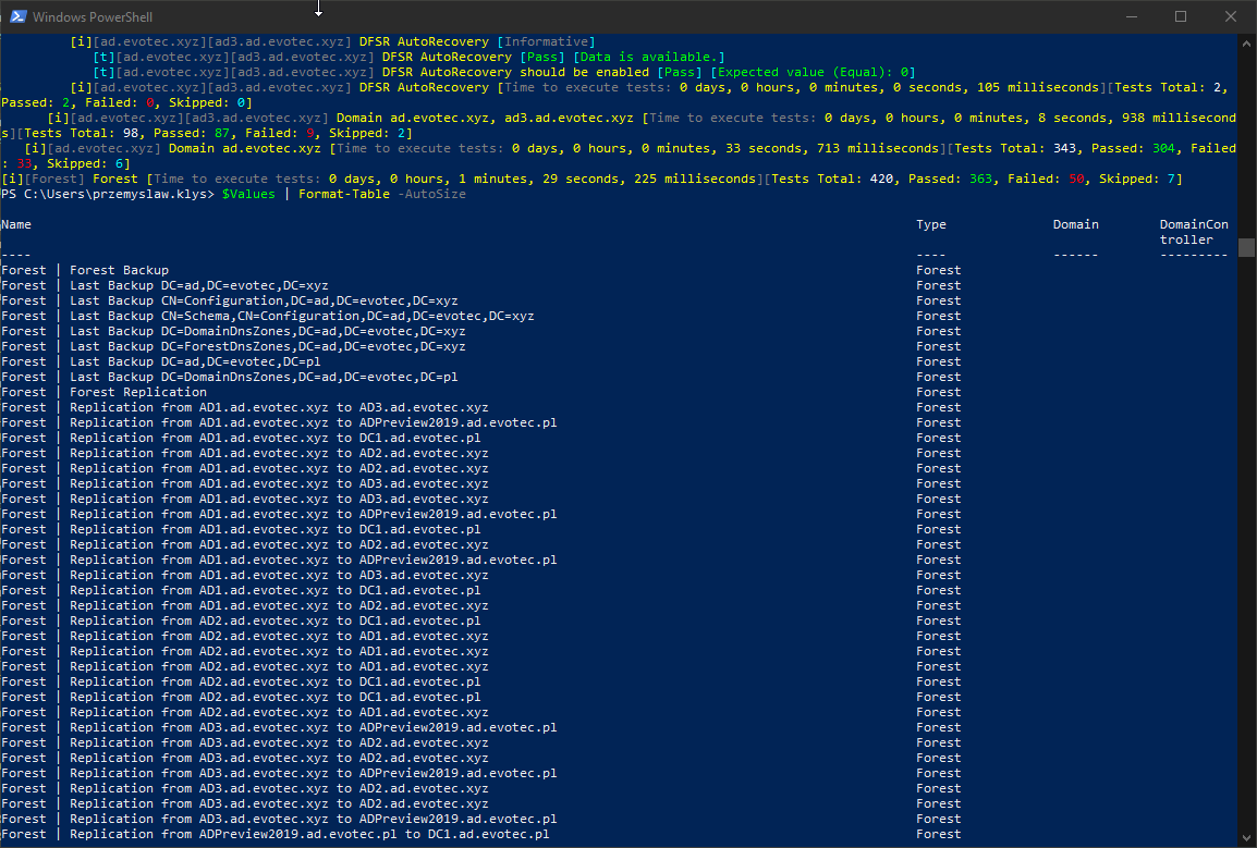 What I love about it, is that with one command Test-ADPester it delivered me the status of my Active Directory. Not a lot of it, but enough to tell whether my Active Directory is healthy or not, with virtually zero effort on my side.