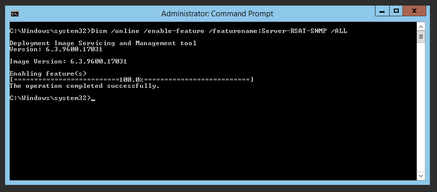 C:\Windows\system32>Dism /online /enable-feature /featurename:Server-RSAT-SNMP /ALL