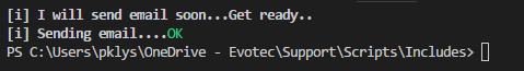 Write-Color "[i] ", "I will send email soon...", "Get ready.." -Color White
